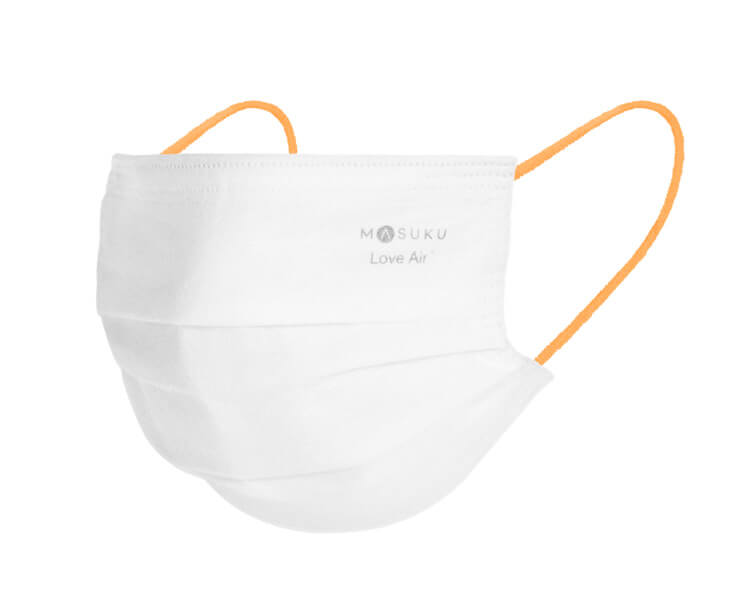Masuku maskelerindeki turuncu kulak halkaları, kafa boyutu ne olursa olsun iyi bir uyum sağlamak için biyolojik olarak parçalanabilen iplikle dokunan %100 doğal kauçuktan yapılmış. Bu arada burun klipsi de kâğıt kaplı demir bir telden üretiliyor.